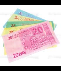 Des billets de banque (factices) en papier bonbon imprimés à l’encre alimentaire.