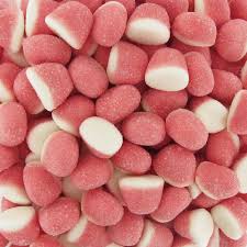 - sirop de glucose, sucre, gélatine, acidifiants (acide citrique, acide lactique), jus de fraise au concentré de jus de fraise, gélifiant (pectine), arômes, colorant (carmins).