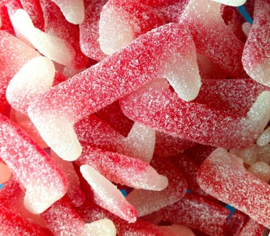Sucre; sirop de glucose ; amidon de BLÉ ; eau ; amidon de maïs modifié ; acidifiants (acide acétique, acide lactique, acide malique) ; amidon de pomme de terre modifié ; carbonate acide de sodium ; arôme ; colorant (cochenille). Protéger de la lumière, la chaleur et l'humidité