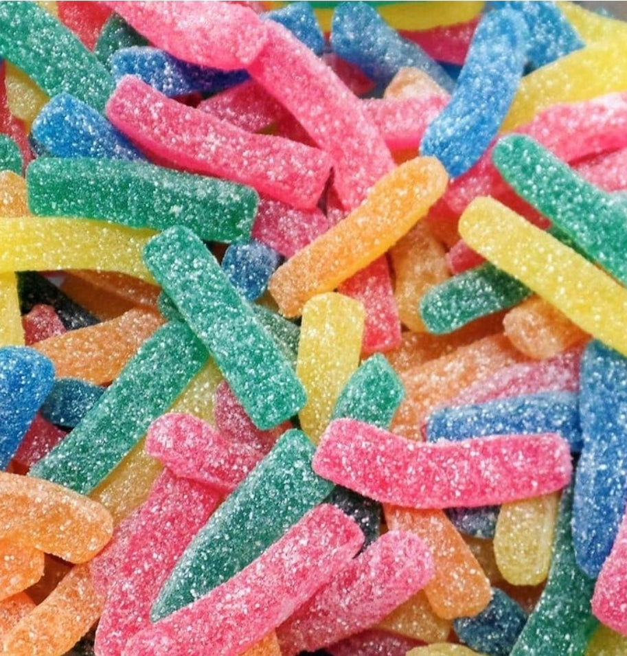 Ingrédients : Sirop de glucose; sucre; gélatine; dextrose; acidifiants: acide citrique, acide malique; agent d’enrobage: cire de carnauba; correcteurs d’acidité: citrate tricalcique, malate acide de sodium; arôme; concentrés de fruits et de plantes: citron, carthame; sirop de sucre inverti; colorants: bleu patenté V, carotènes végétaux, lutéine, anthocyanes.