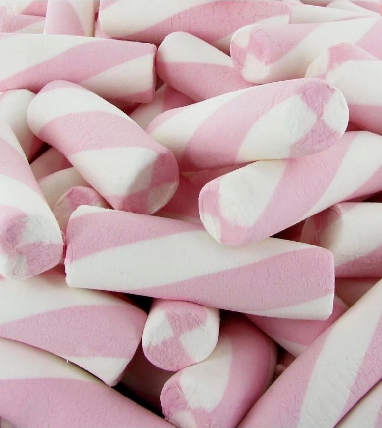 Les fameuses guimauves crémeuses bicolores roses et blanches.