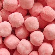 La célèbre et inimitable confiserie en forme de boule à base de pâte à mâcher goût Fraise enrobée de sucre glace.