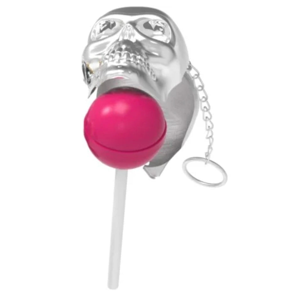 Halloween est la fête des morts. Elle a lieu tous les ans le 31 octobre. Comme elle est destinée aux enfants, elle adoucit son caractère macabre par une bonne tranche de rire, ce qui rend ce moment profondément ludique ! Ce sera le cas avec ce bonbon Halloween en forme de crâne métallisé, renfermant une sucette à la fraise.