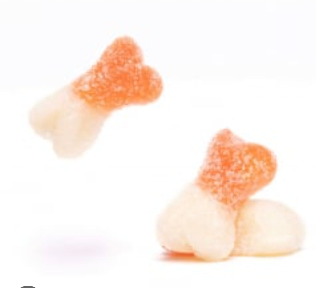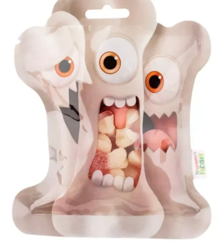 Sachets de 80 grammes d'os à la fraise en bonbon gélifié recouvert de sucre de la marque The Gommy's Factory