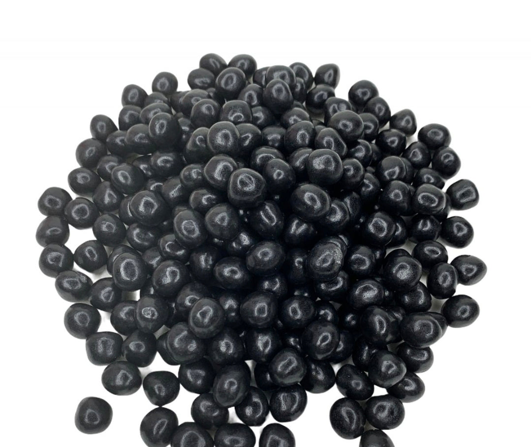 Ingrédients : Sucre, sirop de glucose, amidon, acidifiants [E330, E296], correcteurs d'acidité [E331, E350i], arôme, concentré de spiruline, colorants [E100, E153, E163], agent d'enrobage [E903].